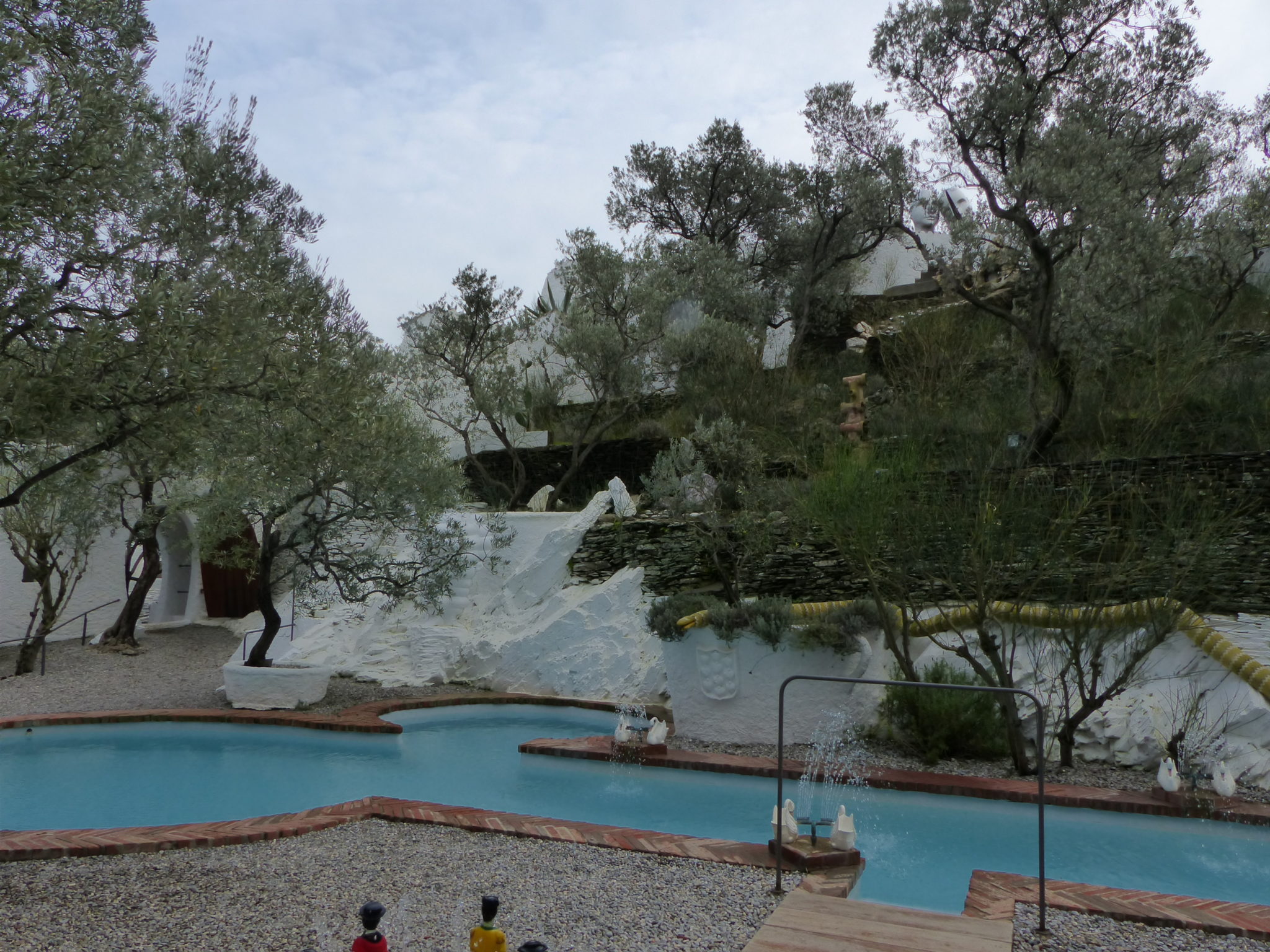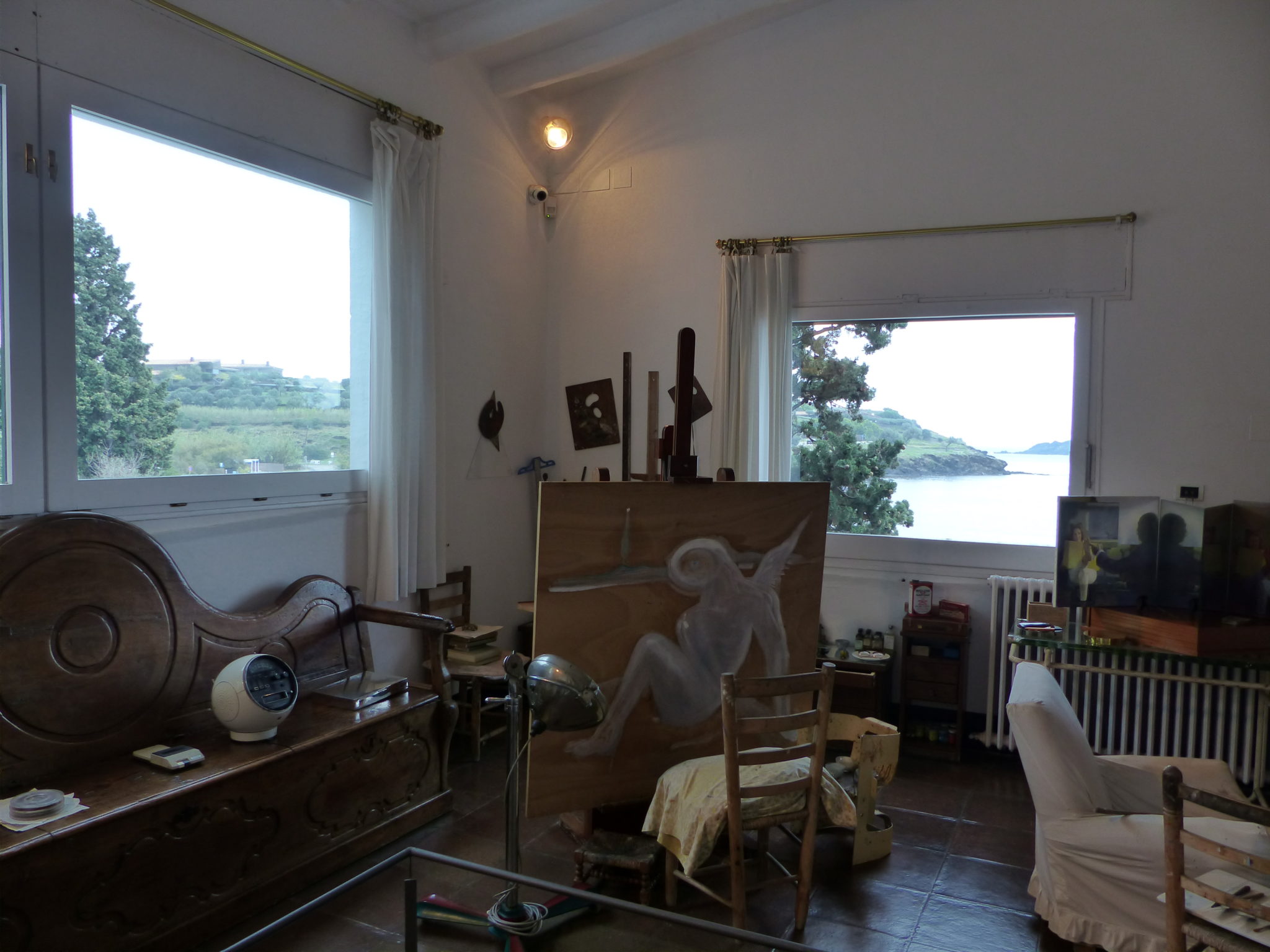 It is right on the water in a little fishing village. Dali started by buying a fisherman’s cottage which meant one room. He kept buying, fixing up, connecting, adding, etc. until they ended up with this big house. As a result the house is a little higgledy piggledy, going over and around the rocks on the coast, but served their needs.