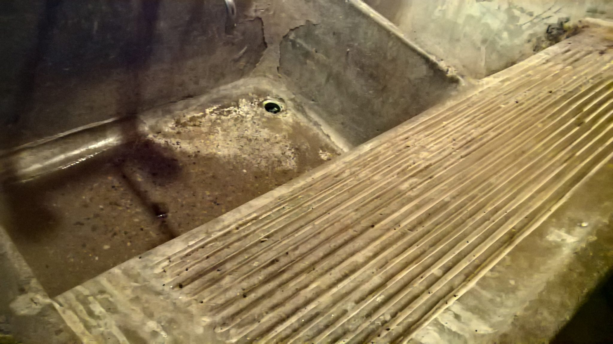 Well, another feature of the kitchen courtyard is the access to the laundry. I have included two pictures of it, one from long ago and the other more recent. I thought you would enjoy the old washboard sink—it still works.