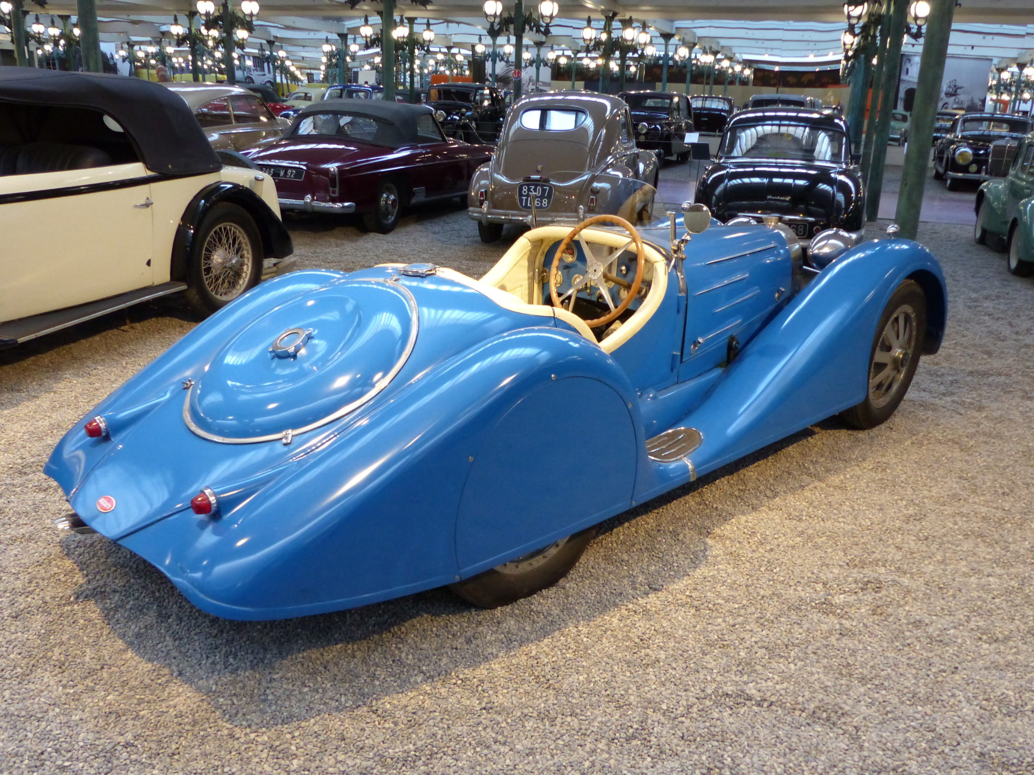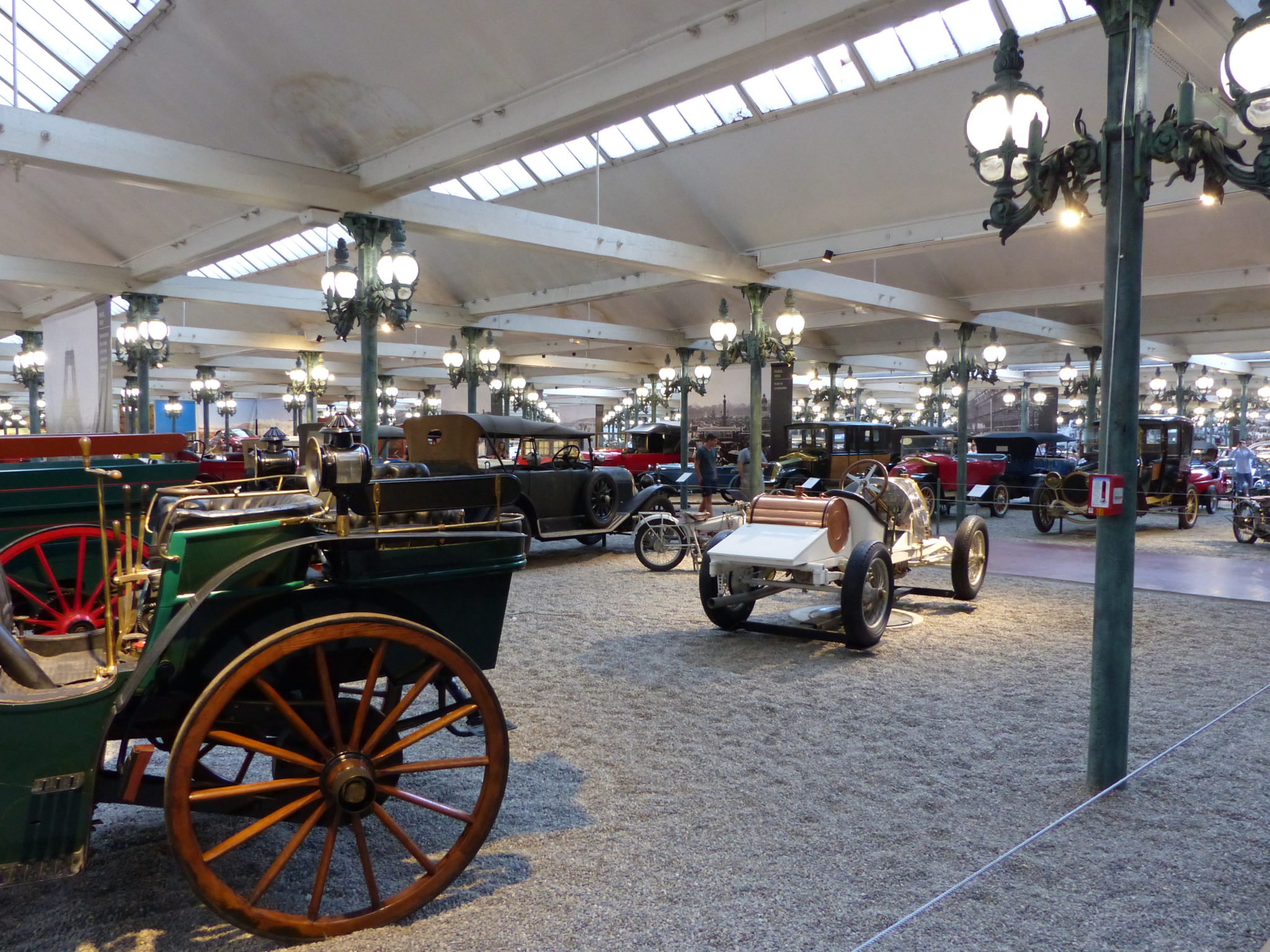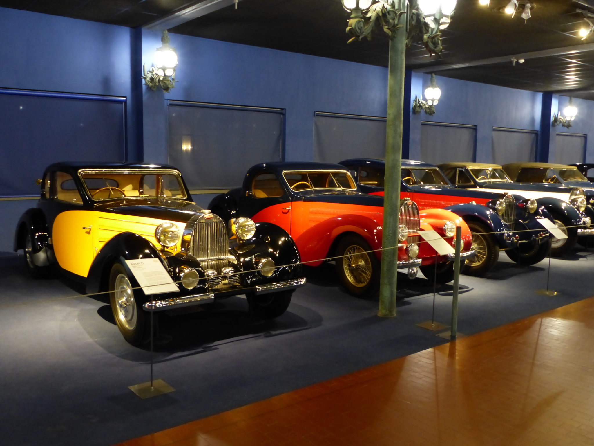 Okay, so this post is for you car enthusiasts out there. Our route to Noyers took us through Mulhouse (good planning on my part) where the French National Auto Collection, also known as the Schlumpf Collection is housed; so, of course, we had to stop there. We were last there in 2002, just a couple of years after the French government had taken it over. I had been reading that they had significantly enhanced the collection in recent years and decided I had to see for myself and I’m glad I did. For those not familiar with the Schlumpf Collection or the ‘Schlumpf Obsession’, a little background. The Schlumpf brothers were two textile industrialists in Mulhouse, France with an obsession with Bugatti. They set about trying to collect every Bugatti in existence or near enough, even buying entire collections of cars just to get a Bugatti. They were very secretive about it, however, and kept the cars in unused warehouses in their complex. They even bought former Paris streetlights to use in their very private collection. As happens, they ran into financial difficulty and, when unable to meet payroll, the workers took over the factory, went into what they thought was an empty warehouse and lo and behold! The French government stepped in and ended up taking over the collection and keeping it together as a Cultural Treasure. Smart move! Initially the collection was 85-90% Bugatti, but the current management has turned the collection into a comprehensive history of European automobilia (the only non-European marque I recognized was a vintage Harley-Davidson with sidecar). It’s still the best Bugatti collection in the world, but now much more comprehensive with a new reception area and improved presentation. Of note, of course, are two of the six Bugatti Royale’s ever made. They’re still displayed in the Schlumpf brother’s old warehouse under Parisian streetlamps and is well worth a visit if you’re near Mulhouse in the Alsace region of France.