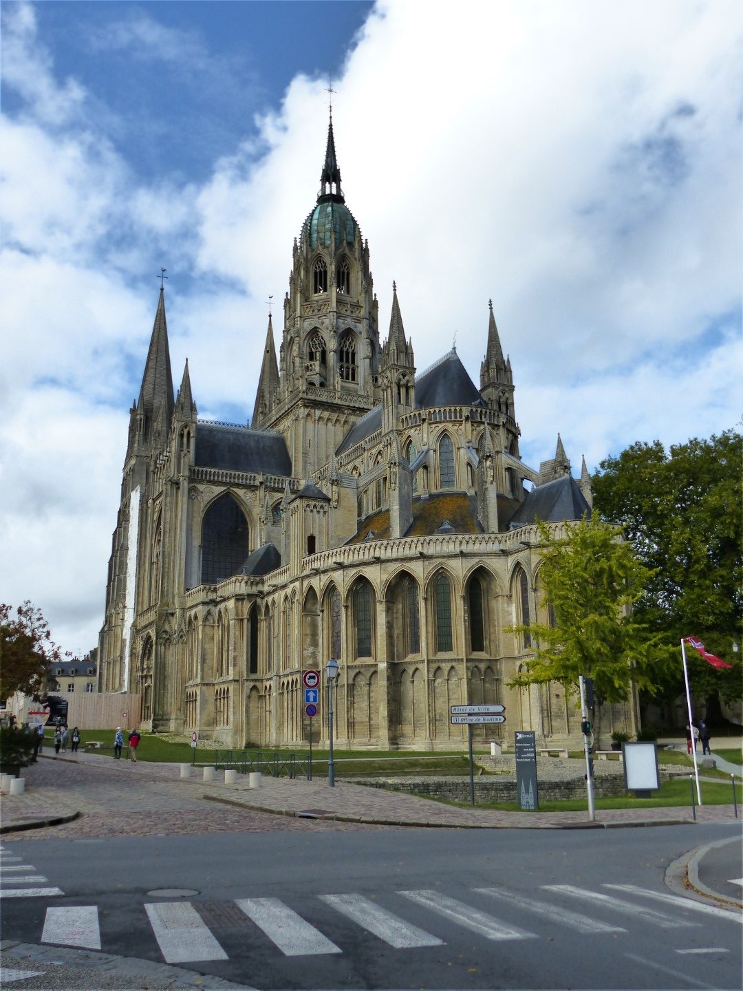 As mentioned in my last post, Normandy has seen history changing events prior to D-Day.  The Norman conquest of England in 1066 was launched by William the Conqueror, then Duke of Normandy.  The events of that conquest are recorded in the famous Bayeux Tapestry that Anne has referred to.  It has its own interesting history and is a must see if near Bayeux.  However, having viewed it twice myself, I elected to explore the old center of Bayeux while Anne made a return pilgrimage.  Bayeux came through the war relatively unscathed and still has many original buildings including an impressive cathedral that’s not terribly well known.  The Bayeux Tapestry hung there for many years before being moved to its current location. (note: That museum is due to be renovated & upgraded in 2020/22 and the tapestry will be on loan to the U.K. where the battle took place.)