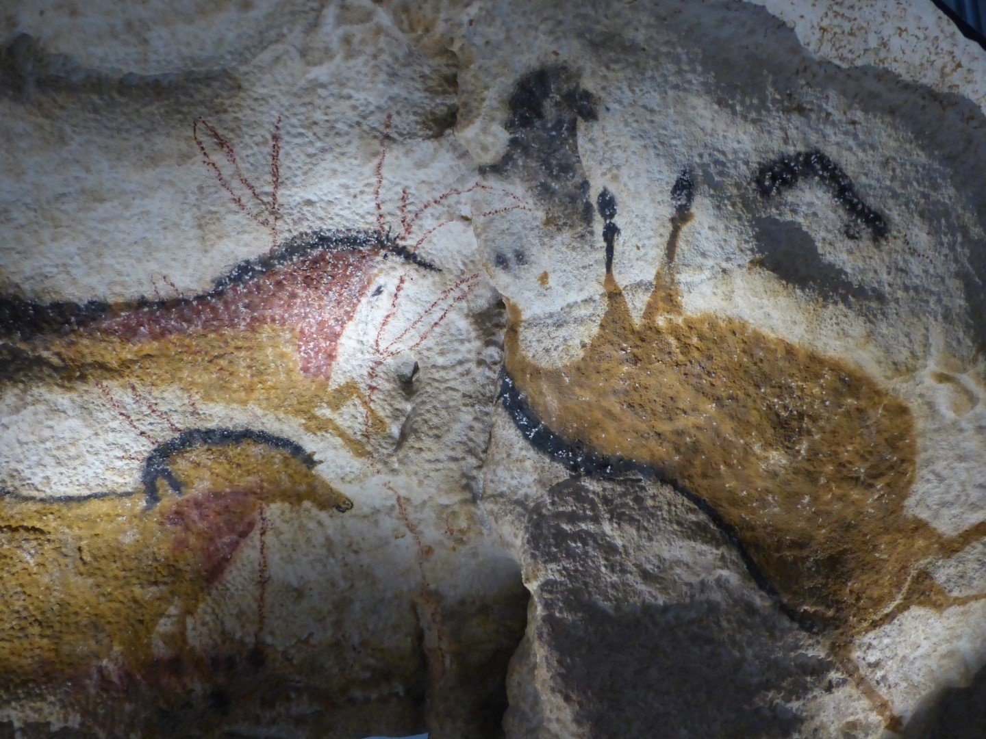 The Dordogne River and its tributaries flow through an area of major limestone deposits. As a result, the rivers have cut valleys through the limestone over the years leaving major cliff formations and grottos throughout the area. While these natural formations were often built in and fortified in medieval times, they frequently show occupation from prehistoric times. The most famous of these is probably the Lascaux Cave Paintings discovered in 1960 by four teenagers exploring a cave system that had been revealed by a fallen tree. Believed to be 17,000 years old, they are remarkable for their color and the techniques used. The actual caves are now closed to protect the paintings from the temperature and moisture fluctuations due to human presence. However, they have faithfully reproduced the entire cave system and its paintings in a new visitor center just open in 2016. It’s extremally well done and a site of major scientific importance.