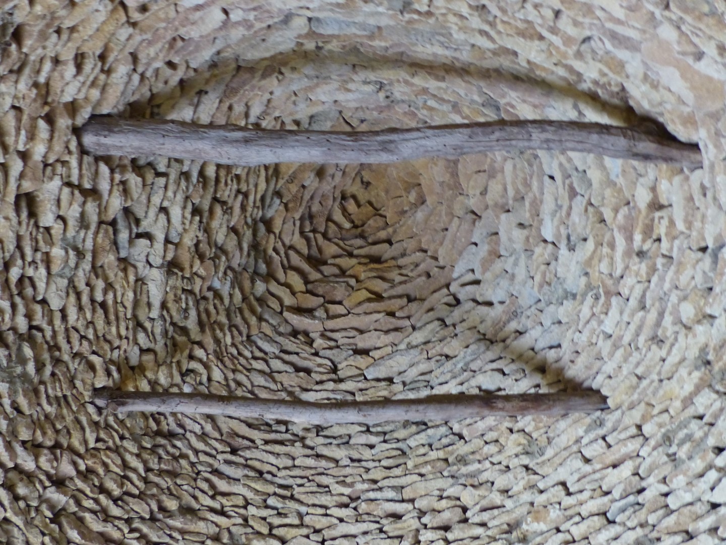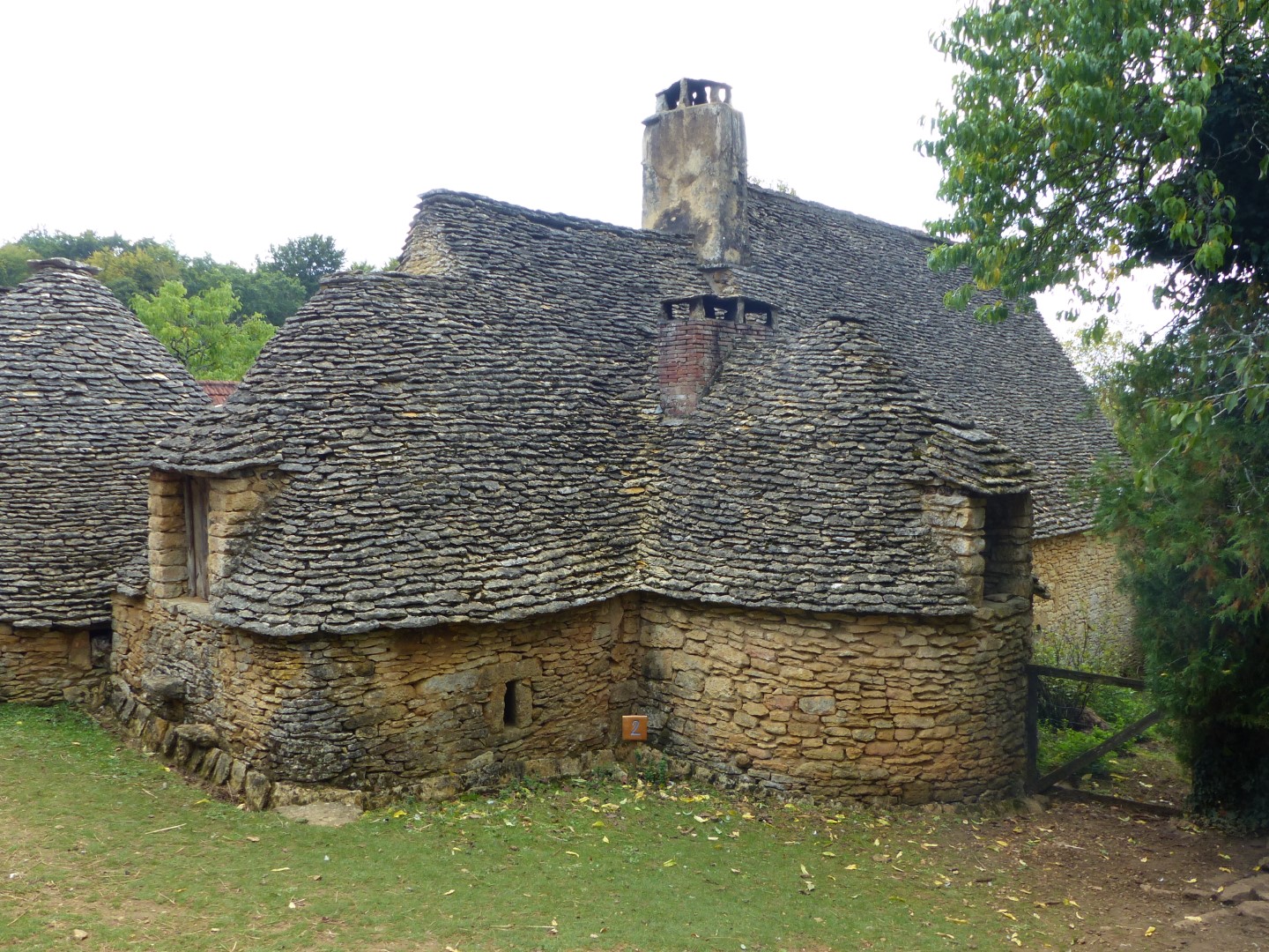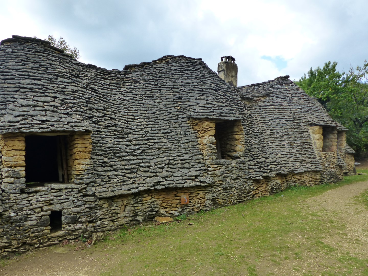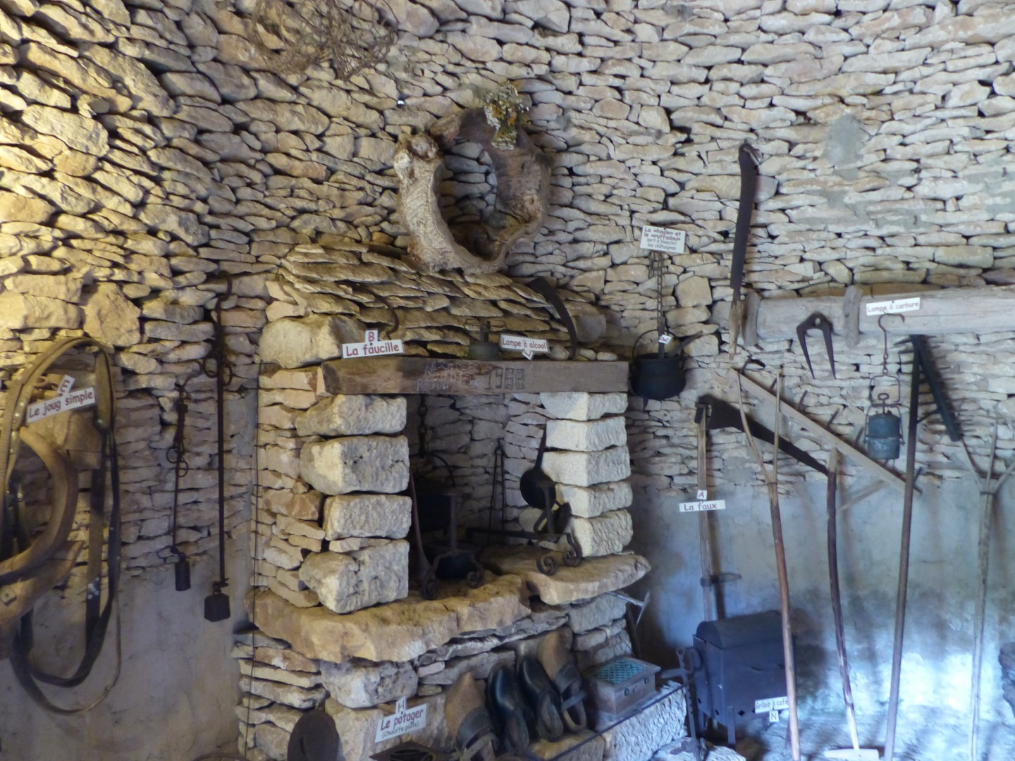 Because of the many exposed rock formations, stone is the building material of choice in the area for just about everything, even roofs! Many of the chateaux even have roofs made with flat chunks of stone layered up the roof’s supporting beams. Farmers took it one step further, making huts and farm buildings called Cabanes or Bories by dry laying of stone without the use of mortar. Using no supporting beams, the stone roofs appear to defy gravity. They were in common use in medieval times and are still seen being used as sheds on farms and country homes. ‘Les Cabanes du Breuil’ that we visited is a working farm that has one of the larger groupings of these unique structures and keeps the art form alive.