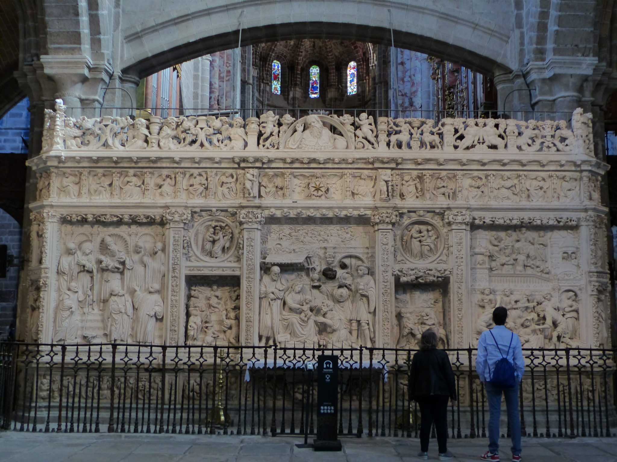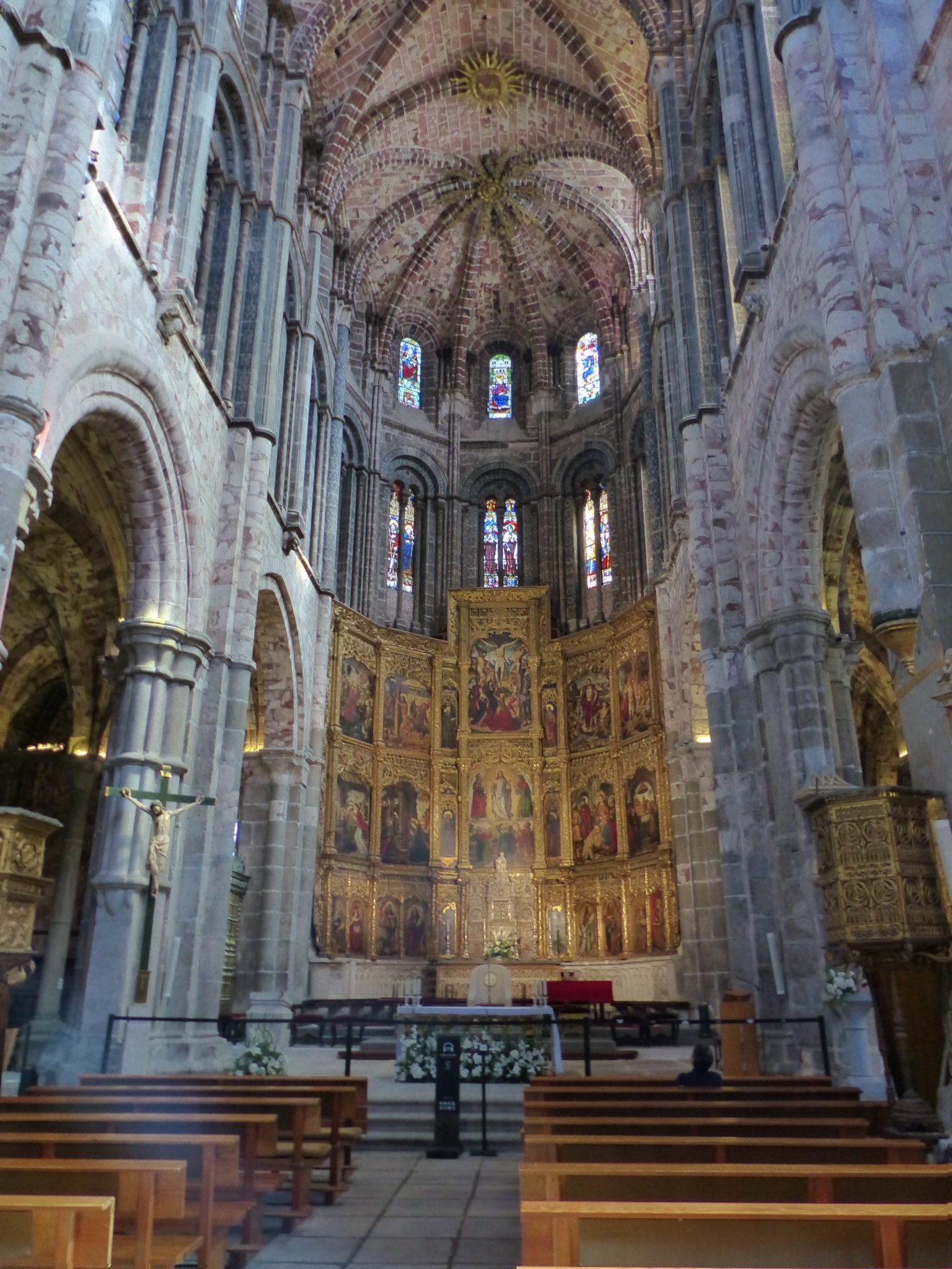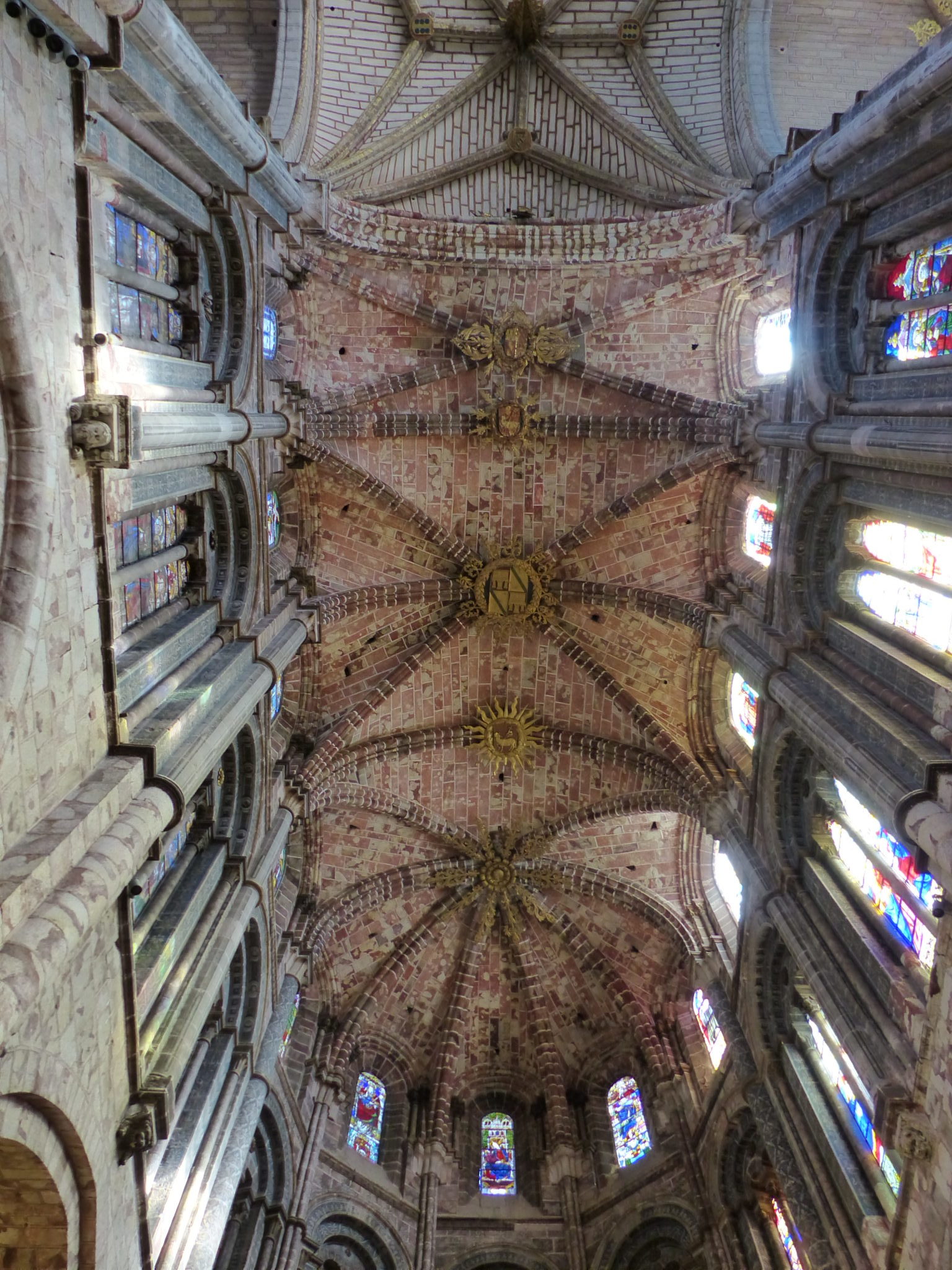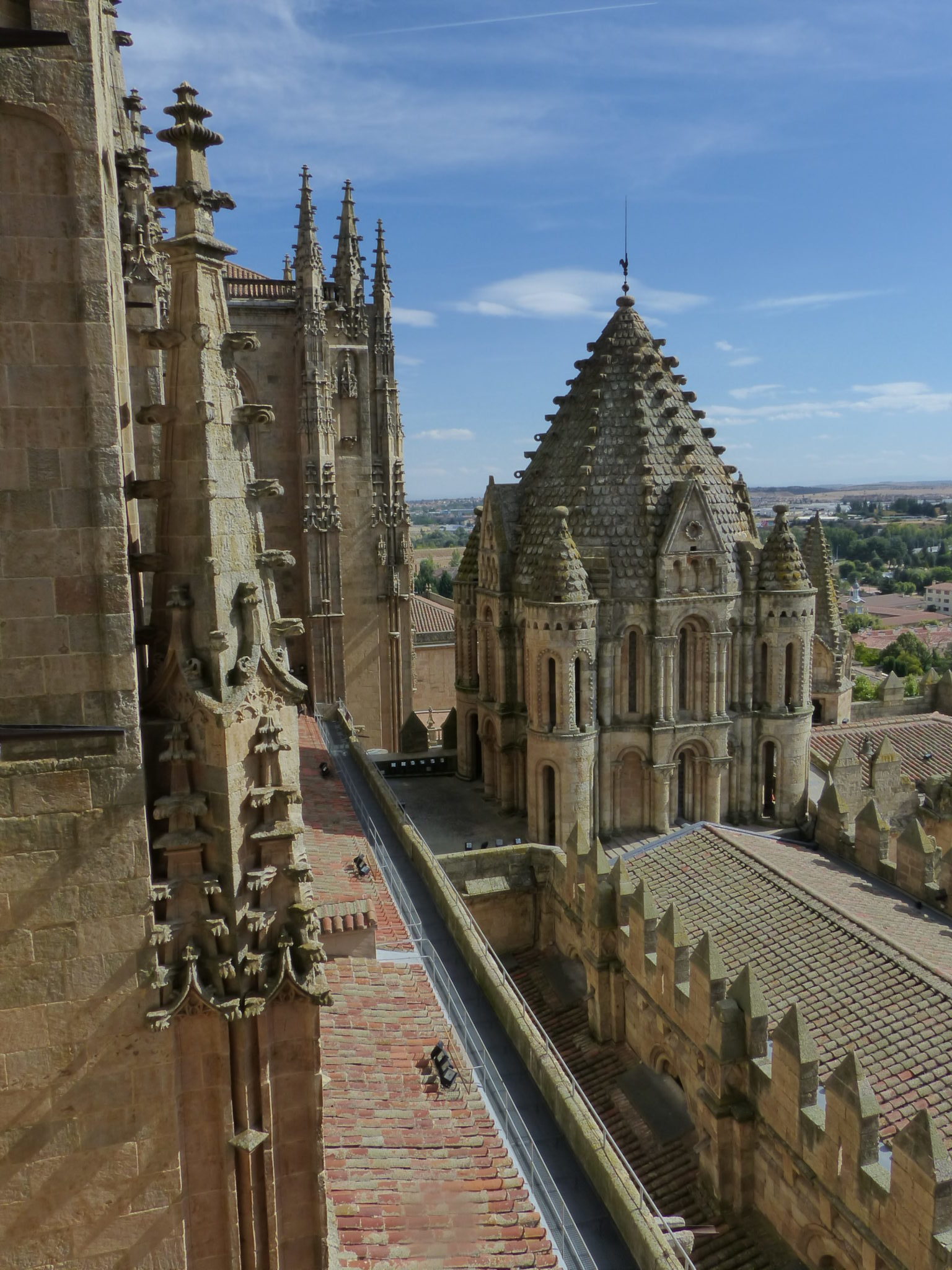 First, a few thoughts on Salamanca. In a country of ornate cities, Salamanca has to rate near the top. Everything is big and ornately decorated. We mistook one of the University buildings for the cathedral before we got our bearings. The University buildings are big and ornate, the two conjoined cathedrals are big and ornate, the city’s Plaza Mayor (main city square) is one of the largest in Spain and surrounded by impressive buildings. As Anne said, we got to observe two weddings in the cathedrals. They don’t close it to tourists as they’re so big, it really doesn’t impact them. The two cathedrals share a common wall and the bell tower and I must admit, I found the older medieval cathedral to be more appealing in its restraint. The highlight for me, however, was the climb of the bell tower (I’ll climb any that are available)! You start by the old cathedral, climb to an outside metal gallery that takes you over the roof into a gallery across the inside of the new cathedral, up another level and back across an outside gallery across the front façade back to the bell tower (finally) and up to the top. Definitely worth the price of admission!